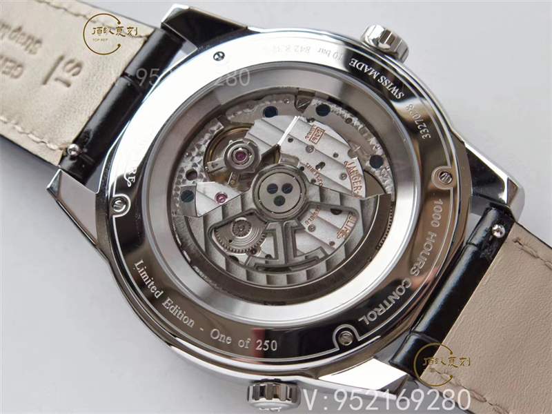 此次機芯同樣采用MIYOTA.9110芯改積家CAL.939A/1型機芯,實現原裝所有功能——包括時分秒,日期,白天黑夜顯示,世界時顯示還有動力儲存顯示。其實在機芯上與正品對比,是完全經不起推敲的,避震器寶石不同,無卡度設計;寶石點綴的漂亮程度也有不小的差異,不過我們玩復刻,也無非就是非常喜歡,但是兜里沒錢,可以玩。