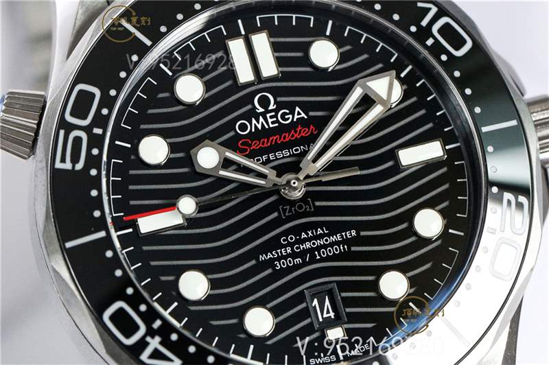 1.正品表盤是陶瓷材質,經過拋光后,表盤像一塊鏡子一樣平整,經過激光工藝打出的波浪紋,紋路非常清晰;VS廠的陶瓷表盤完全按足正品的工藝,無論是平整度還是波浪紋的清晰度,完全可以媲美正品;而OM廠的海馬300米表盤用的是普通的鋼板,無論整件字面的平整度和清晰度都遠遠不達VS廠和正品的效果。