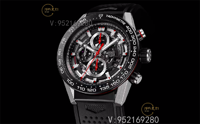 黑色外緣壓印60秒/分鐘刻度,交替處理飾面的鍍銠鑲貼時標,涂有白色superluminova?熒光涂料;帶交替處理飾面的鍍銠時針和分針,涂有白色superluminova?熒光涂料;紅色中央指針,鍍銠拋光鑲貼TAG HEUER(泰格豪雅)標志,壓印“CARRERA HEUER 01 CHRONOGRAPH AUTOMATIC”字樣。