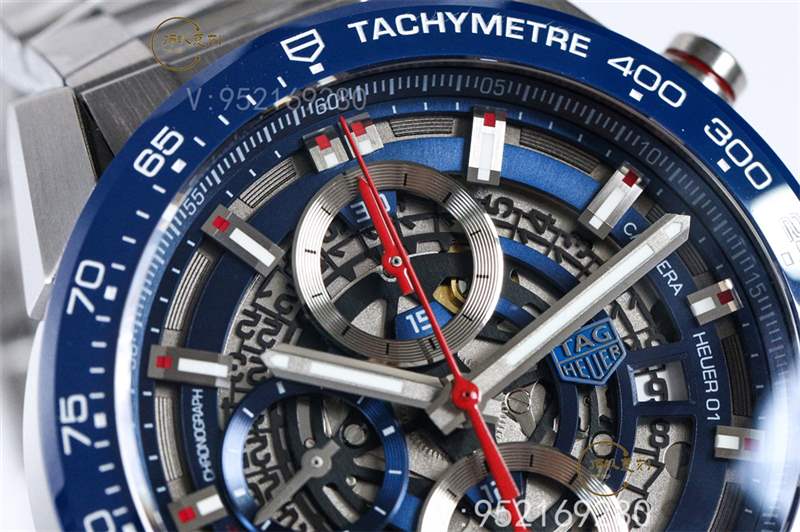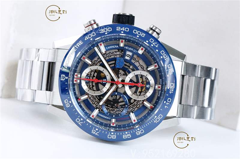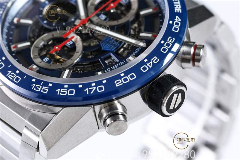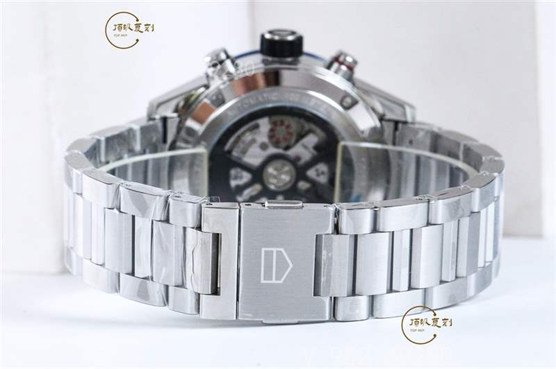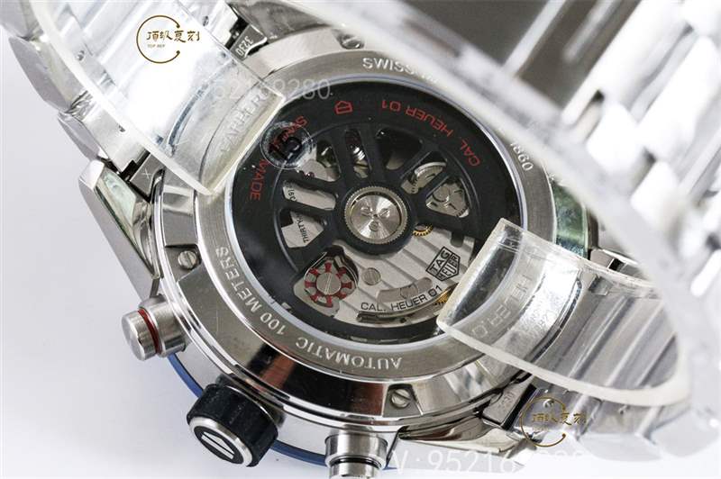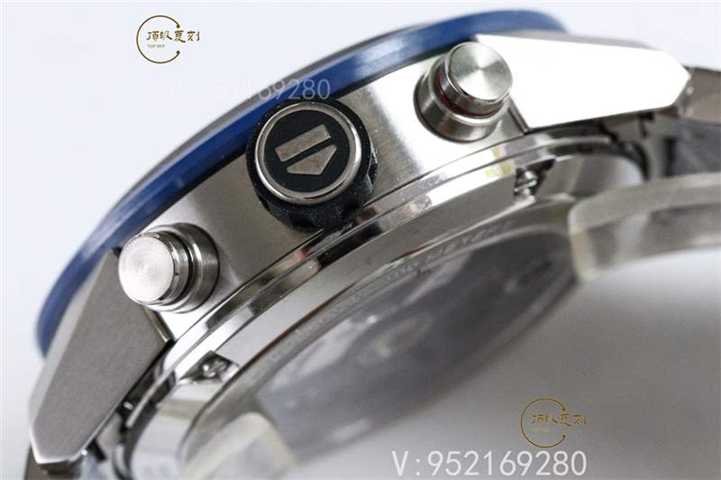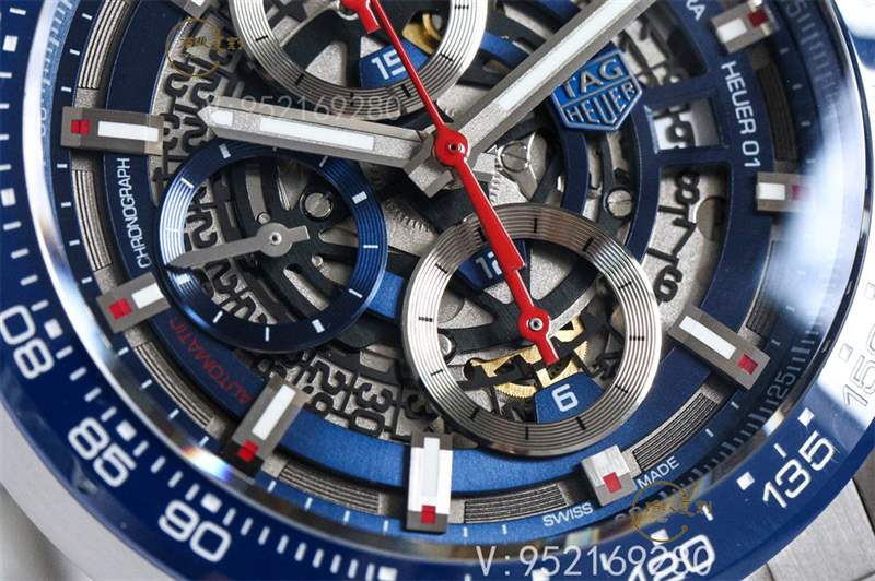 第四點(diǎn),至于盤面細(xì)節(jié),還是保持了之前所有豪雅卡萊拉的優(yōu)秀基因。藍(lán)色外緣壓印60秒/分鐘刻度,交替處理飾面的鍍銠鑲貼時(shí)標(biāo),涂有白色superluminova?熒光涂料;帶交替處理飾面的鍍銠時(shí)針和分針,涂有白色superluminova?熒光涂料;紅色中央指針,鍍銠拋光鑲貼TAG HEUER(泰格豪雅)標(biāo)志,壓印“CARRERA HEUER 01 CHRONOGRAPH AUTOMATIC”字樣。藍(lán)色鏤空表盤典雅且極富動(dòng)感,12 點(diǎn)鐘位置設(shè)有分鐘計(jì)時(shí)盤,6 點(diǎn)鐘位置設(shè)有小時(shí)計(jì)時(shí)盤,9 點(diǎn)鐘位置設(shè)有秒鐘計(jì)時(shí)盤。因?yàn)闄C(jī)芯的緣故,所有xf廠的豪雅卡拉來(lái)的日歷都是與正品的轉(zhuǎn)動(dòng)方向相反,這個(gè)很難察覺(jué)。
