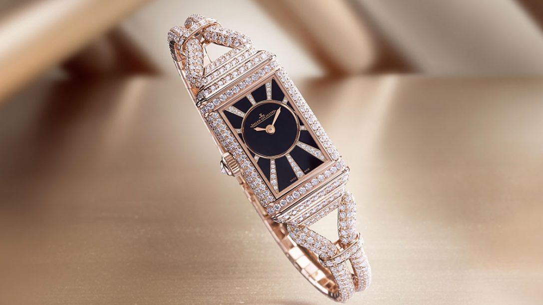 這款時計保留了用于將手表連接到手腕的原始黑色繩索設計,同時增加了一絲高級珠寶,因為柔性表鏈現在由玫瑰金制成并襯有鉆石,表耳和表殼也是如此。腕表尺寸為36.3×18毫米,表冠飾有寶石,搭載積家844型機芯。其手動上鏈機械機芯能夠將時針和分針雙向旋轉,提供38小時的動力儲存。