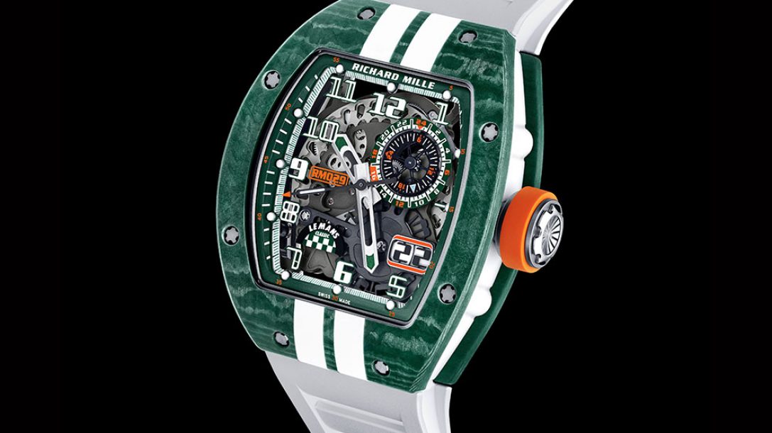 白色橡膠表帶進(jìn)一步彰顯了 RM 029 勒芒 Automatique Classic 的運動個性。