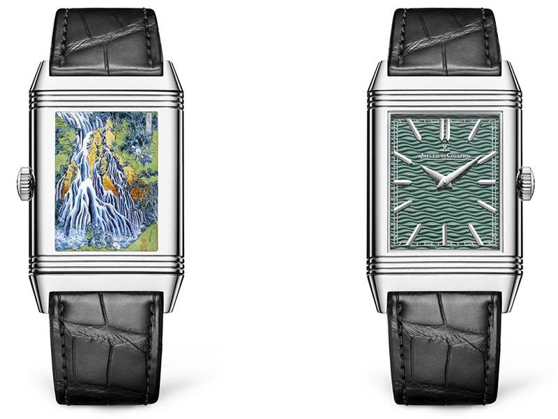 雖然?Reverso?腕表可能是在 90 年前為馬球運動員構思的,但它仍然是當代靈感的強大源泉。其精致彎曲的矩形輪廓,配有滑動表殼,使其能夠呈現兩個面孔,一個顯示時間,另一個充當創意的空白畫布。對于僅生產了10枚822型手動上鏈機芯的Reverso致敬琺瑯北齋“Kirifuri瀑布”,積家呼吁其工作室?的藝術家的專業知識,在腕表背面精心復制日本大師北齋的作品。
