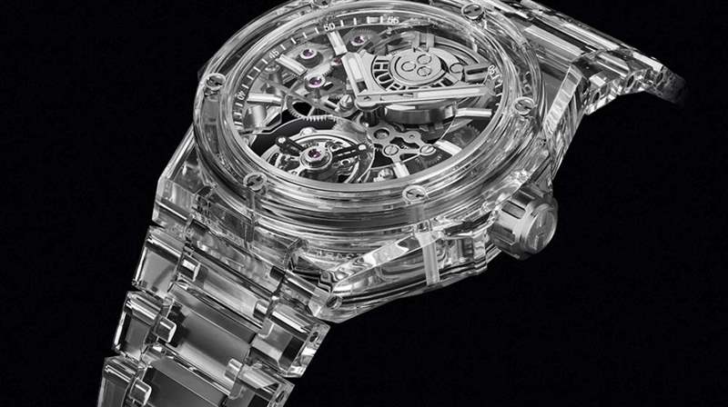 2016年,宇舶表展示了其首款裝飾有藍(lán)寶石表殼的腕表Big Bang Unico Sapphire。當(dāng)時(shí),這種創(chuàng)造本身就是這樣,而且非常正確地被認(rèn)為是一項(xiàng)真正的技術(shù)壯舉。這種材料的硬度略低于鉆石。今年,來自Nyon的制表師突破了可能的極限,并在Big Bang Integral Tourbillon Full Sapphire的幌子下揭示了終極變化。三個(gè)機(jī)芯橋板的直徑為43毫米,厚度為15.25毫米,采用37個(gè)組件(包括五個(gè)藍(lán)寶石組件)制成,采用這種半透明材料制成。結(jié)果呢?它的自動(dòng)上鏈運(yùn)動(dòng)為我們提供了無與倫比的視覺體驗(yàn)。光在任何地方都至高無上。工作原理、位于12點(diǎn)鐘位置的微型擺陀和位于6點(diǎn)鐘位置的調(diào)節(jié)裝置完全處于中心位置。時(shí)針和分針將鼠標(biāo)懸停在涂有Super-LumiNova?的索引上,就像指針一樣,以確保完美的可讀性。