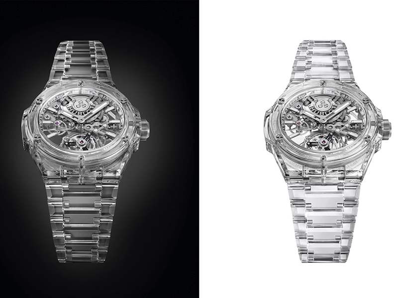 這款壯觀場(chǎng)景設(shè)計(jì)的最高榮耀在于,由鈦合金折疊式表扣連接的令人難以置信的靈活手鐲上的所有鏈節(jié)也都采用這種半透明材料雕刻而成。至于金屬,它的存在被完全淡化了。手鐲和表殼只是一個(gè)!這款腕表限量發(fā)行30枚,透明度成為純粹的藝術(shù)。